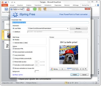 iSpring Free est un plug-in gratuit qui vous permet d'exporter vos présentations au format Flash directement depuis PowerPoint.